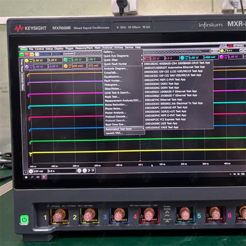是德Infiniium MXR B系列示波器配有硬件加速的自动化分析工具,性能优良且前端噪声超低,能够为工程师提供可靠的测量结果,帮助他们更快进行测试,加速为市场提供设计出众的产品。MXR608B 全部8通道均可提供6GHz带宽,可通过选件构成强大的8合一仪器,具有出色的硬件加速绘图功能,可以全面升级。